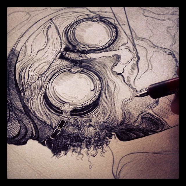 For months, while I was working in the Garden, I fell in love with the work of the illustrator Yuko Shimizu, with her dizzying, exquisite, brave and extremely careful use of the brush. Lord Diadema is a series made with the same technique, but applied with a nib, line by line, intercrossing them to achieve the blackest of blacks and before that passing through all the shades of gray. Everything with a scrupulous control of the hand.